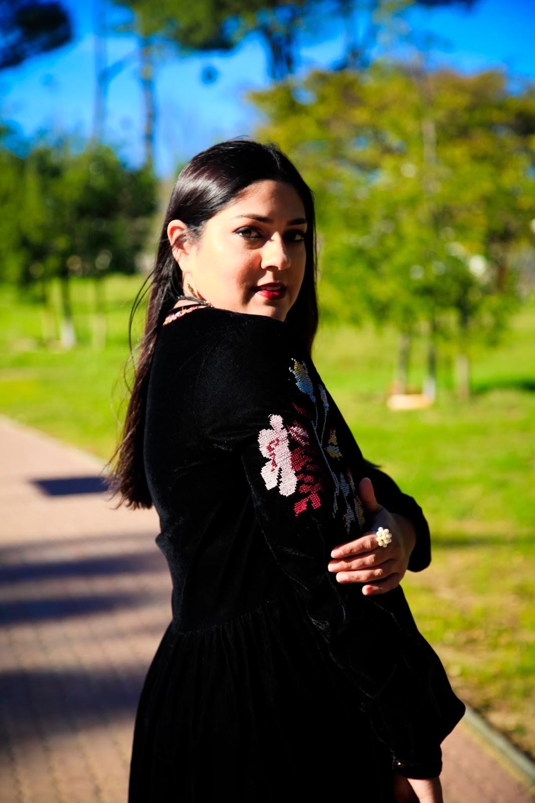 Black velvet dress with embroidery detail : Woolworths